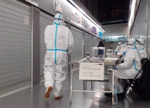 Los miembros de las mesas empiezan a colocarse los Equipos de Protección Individual (EPI) ante la llegada, a partir de las 19 horas, de los electores contagiados, contactos estrechos y sospechosos de ser positivos.